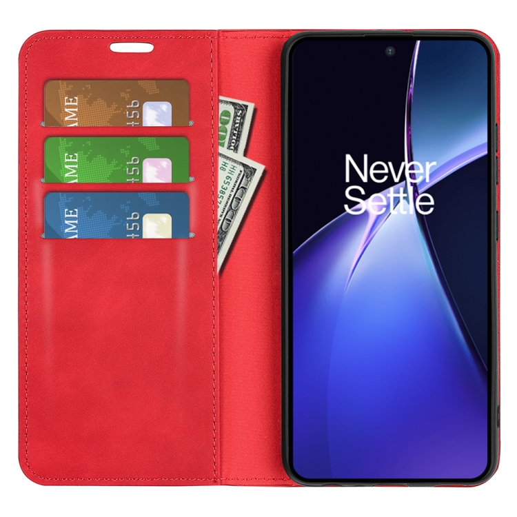 Funda de Cuero con Ventosa Magnética para Teléfono Realme 13+ 5G Retro-Skin (Roja)