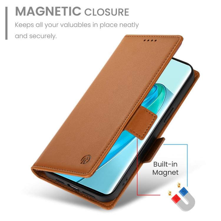 Funda de Cuero Esmerilado con Hebilla Lateral Magnética para Honor X9C Global y Magic7 Lite (Marrón)