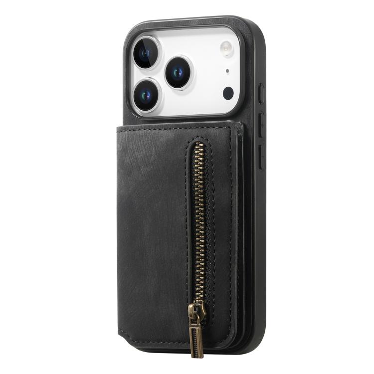 Funda de cuero estilo retro con cremallera para iPhone 17 Pro Max (negro)