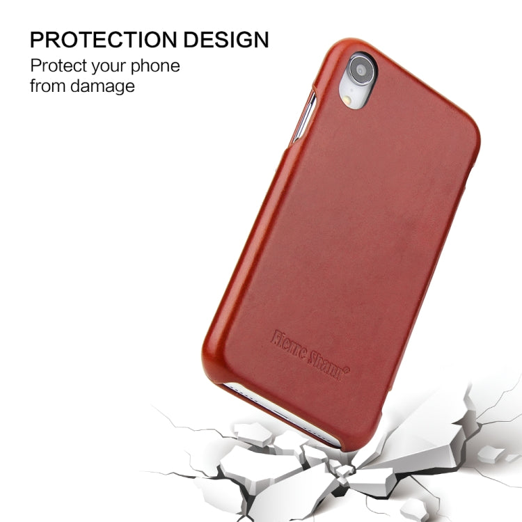 Funda de Cuero Genuino Fierre Shann para iPhone Xr con Tapa Horizontal Magnética (Marrón)
