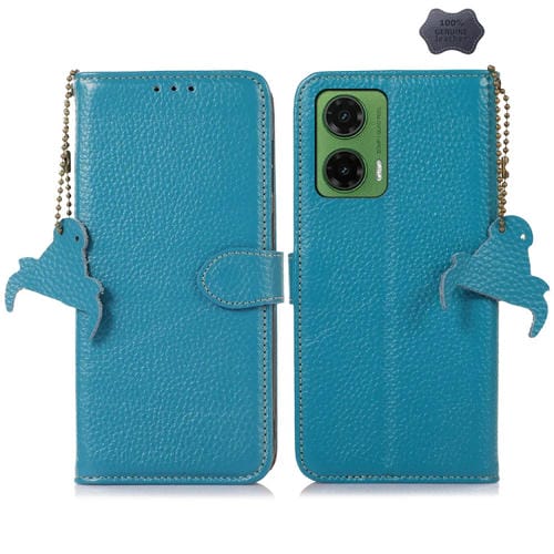 Funda de Cuero Genuino con Textura de Lichi Rfid para Motorola Moto G35 (Azul)