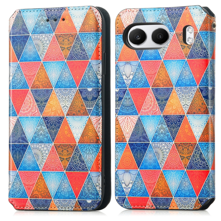 Funda de Cuero Magnética para OnePlus Nord 4 (Mandala de Rombos) Colorida