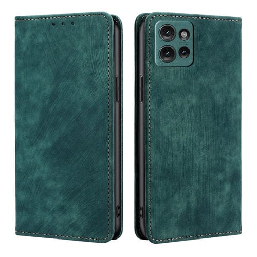 Funda de Cuero Magnética con Cepillo Antirrobo RFID para Motorola Edge 50 5G (Verde)