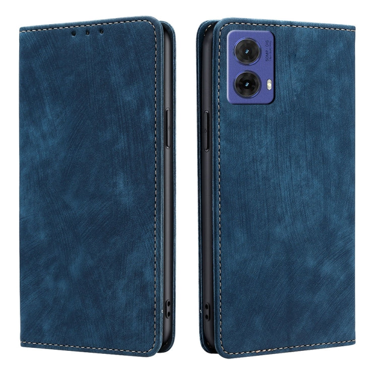 Funda de Cuero Magnética con Cepillo Antirrobo RFID para Motorola Moto G85 5G (Azul)