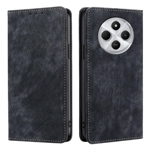 Funda de Cuero Magnética con Cepillo Antirrobo Rfid para Redmi 14C 4G (Negra)