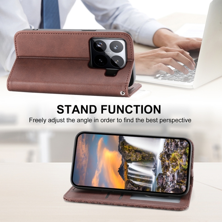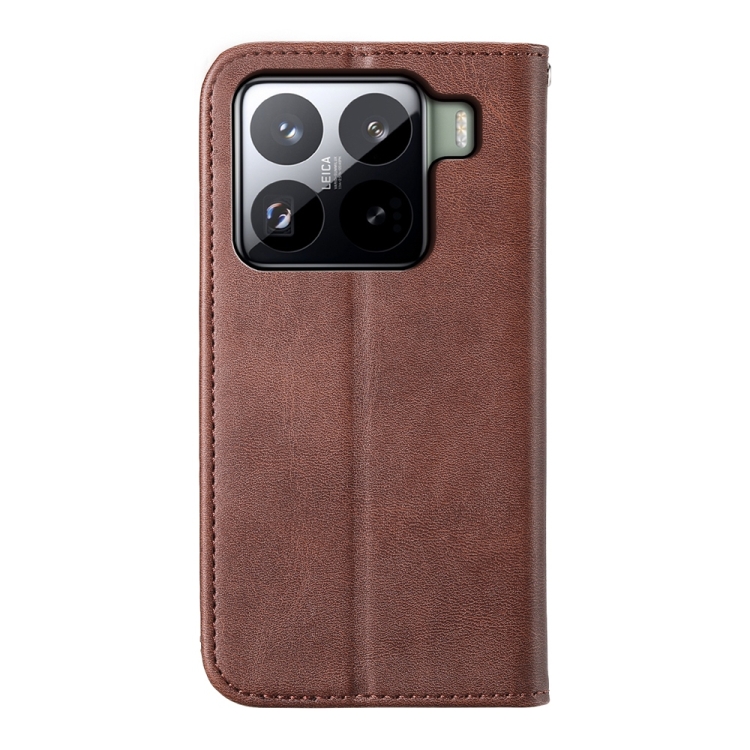 Funda De Cuero Magnético Con Textura De Becerro Y Rejilla Cúbica Para Xiaomi 15 Pro (Marrón)