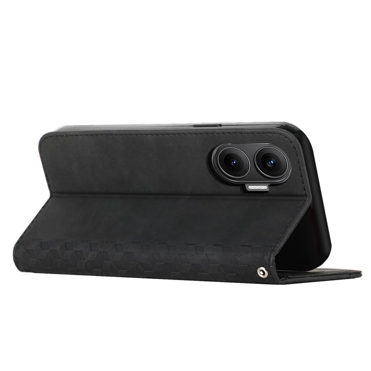 Funda de cuero magnética con textura de diamante para Xiaomi Poco F7 (negro)