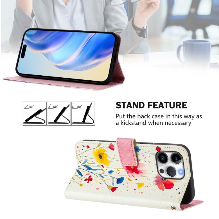 Funda de Cuero para iPhone 16 Pro Diseño Dibujo Artístico Flores y Plantas (Color)
