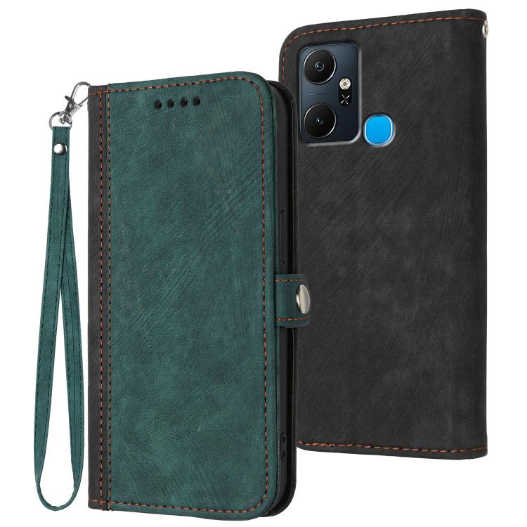 Funda de Cuero para Infinix Smart 6 Plus con Correa y Hebilla Lateral Doble Plegable (Verde Oscuro)