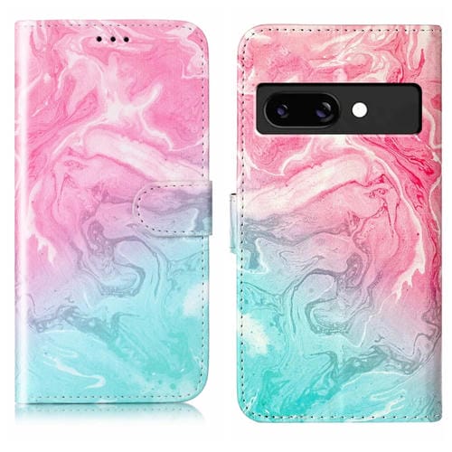 Funda de Cuero para Google Pixel 9A con Patrón Mármol y Dibujo de Colores (Mármol Rosa y Verde)