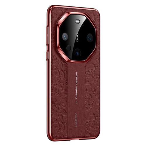 Funda de Cuero Huawei Mate 60 Pro con Diseño Dragón en la Nube (Rojo)