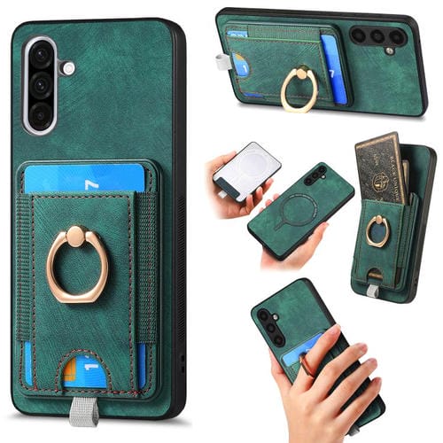 Funda de Cuero Samsung Galaxy A36 Diseño Retro Divisible con Tarjetero Magnético (Verde)