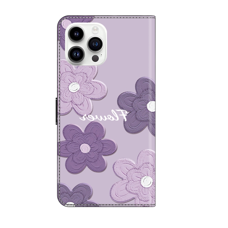 Funda de Cuero Pintada a Mano para iPhone 16 Pro con Flores (Morado Oscuro)
