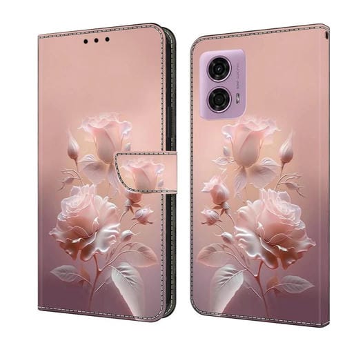 Funda de Cuero pintada a mano para Motorola Moto G24 (Flores de Cerámica)