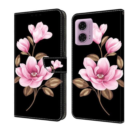 Funda de Cuero Pintada a Mano Motorola Moto G24 (Flores Negras)