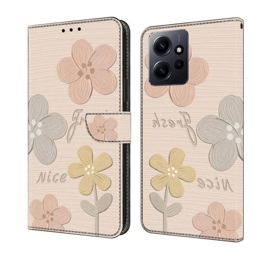 Funda de Cuero Pintada a Mano para Redmi Note 12 4G Global Fresh (Flores Beige)