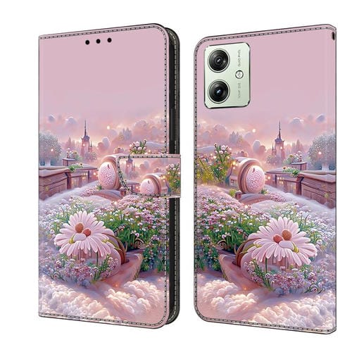 Funda de Cuero Pintada a Mano para Motorola Moto G54 (Jardín)