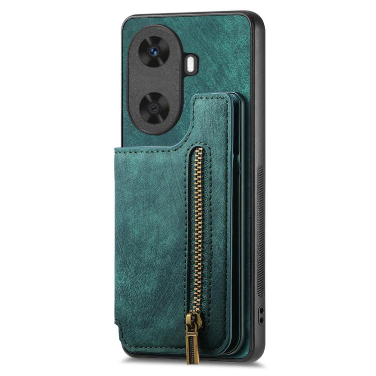 Funda de Cuero Retro con Cremallera para Huawei Enjoy 60 (Verde)