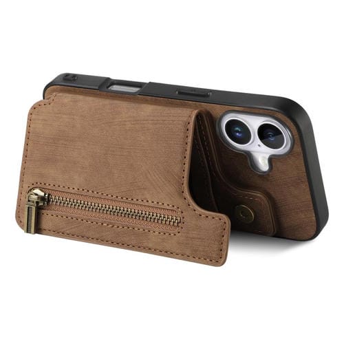 Funda de cuero retro con cremallera para iPhone 17 (marrón)