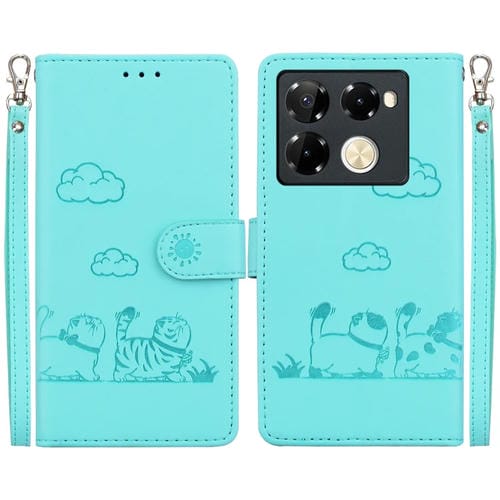 Funda de Cuero Rfid para Infinix Note 40 Pro 5G/4G con Diseño de Gatos (Verde)