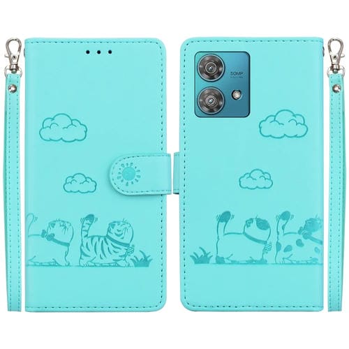 Funda de Cuero Rfid para Motorola Edge 40 Neo con Diseño de Gatos Lindos (Verde)