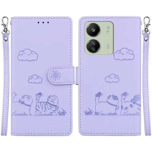 Funda de Cuero Rfid con Diseño de Gatos para Redmi 13C 4G/5G (Morada)