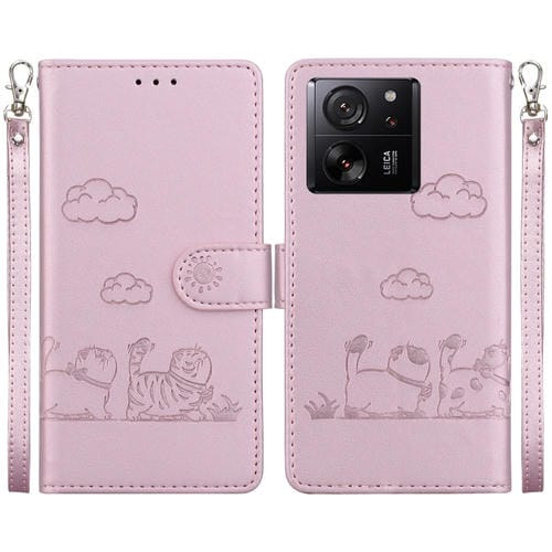 Funda de Cuero Rfid con Diseño de Gatos para Redmi K60 Ultra (Oro Rosa)