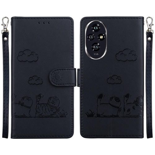 Funda de Cuero Rfid para Honor 200 5G con Diseño de Gatos (Negra)
