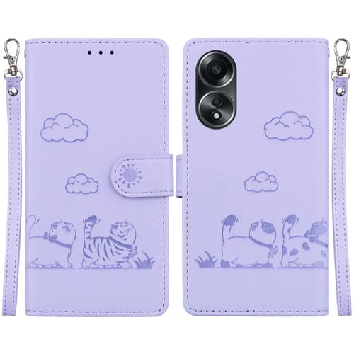 Funda de Cuero Rfid con Diseño de Gatos para Oppo A58 4G (Morada)
