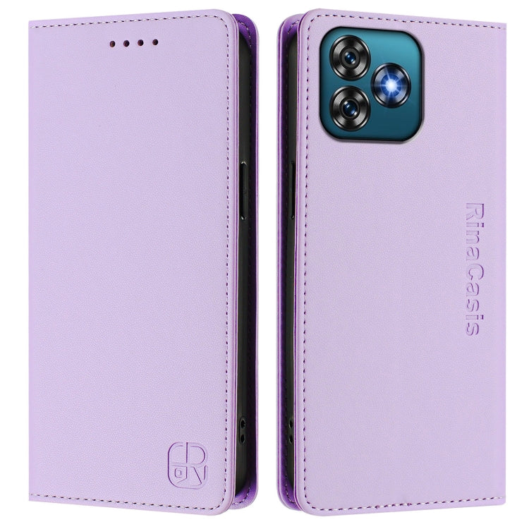 Funda de Cuero Rfid para Oukitel C53 Rc01 con Doble Pliegue y Succión Magnética (Morado Claro)