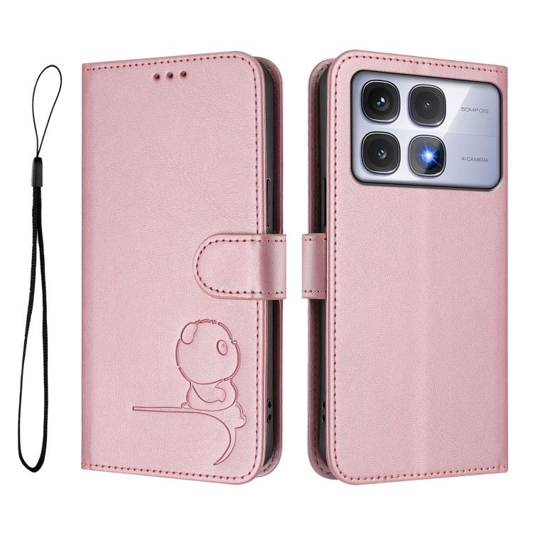 Funda de cuero RFID con estampado de panda y cordón para Redmi K70 Ultra (rosa)