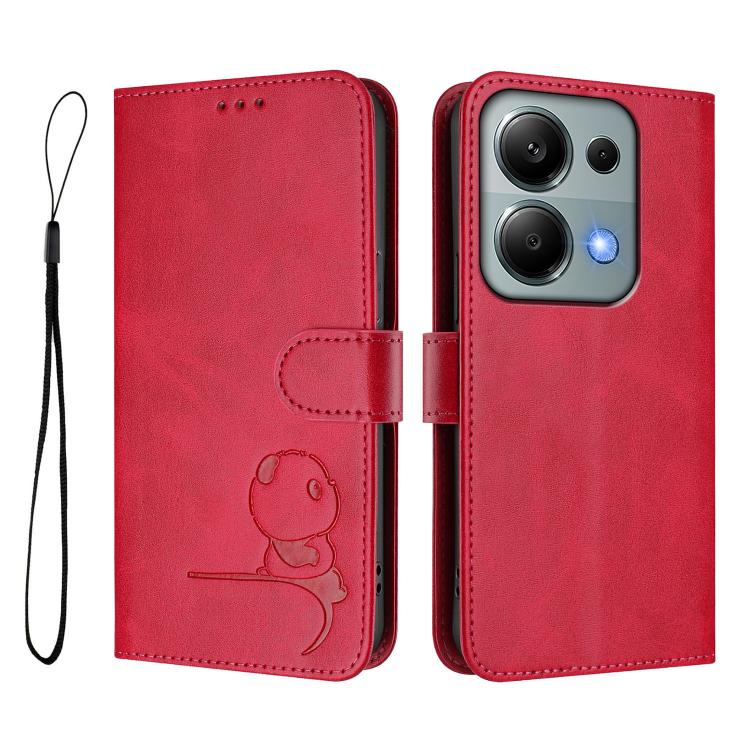 Funda de cuero RFID con estampado de panda y cordón para Redmi Note 13 Pro 4G / Note 14S (rosa)