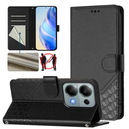 Funda de Cuero Rfid con Relieve de Panal Global para Redmi Note 13 Pro 4G (Negra)