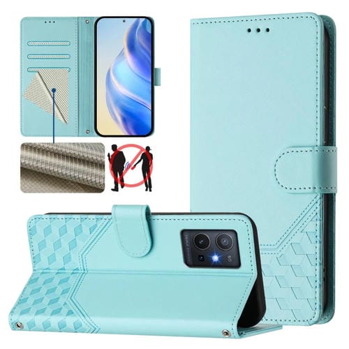 Funda de Cuero Rfid con Relieve de Panal Global para Vivo Y55S 2023/Y75 5G (Verde Menta)