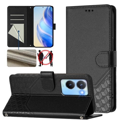 Funda de Cuero Rfid con Relieve de Panal Global para Vivo Y56 5G / Y16 4G / Y02S 4G (Negra)