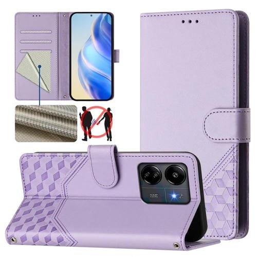 Funda de Cuero Rfid con Relieve de Panal para Redmi 13C 4G (Morado Claro)