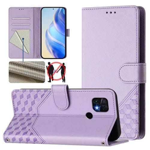 Funda de Cuero Rfid con Relieve de Panal para Xiaomi Poco C40/Redmi 10C (Morado Claro)
