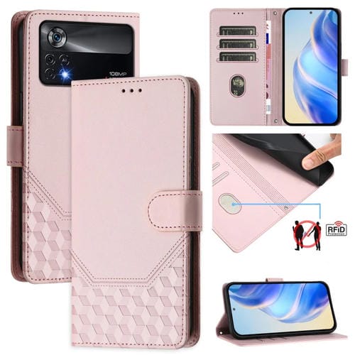 Funda de Cuero Rfid con Relieve de Panal para Xiaomi Poco X4 Pro 5G (Rosa)