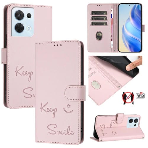 Funda de Cuero Rfid con Relieve de Sonrisa Global para Oppo Reno8 5G (Rosa)