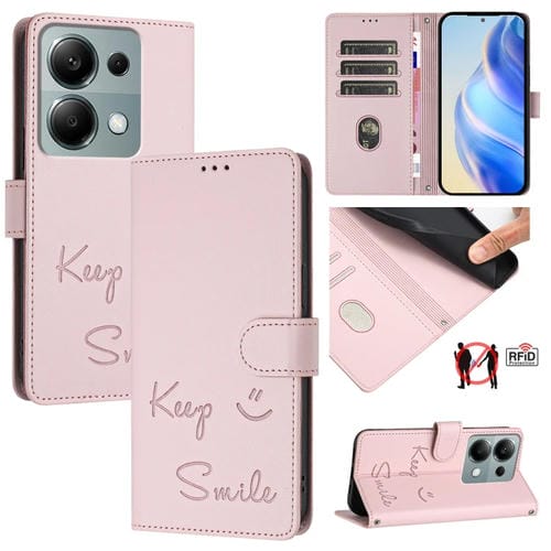 Funda de Cuero Rfid con Relieve de Sonrisa Global para Redmi Note 13 Pro 4G (Rosa)