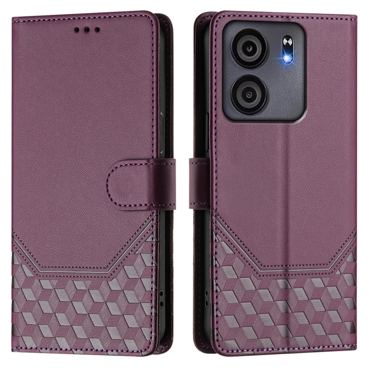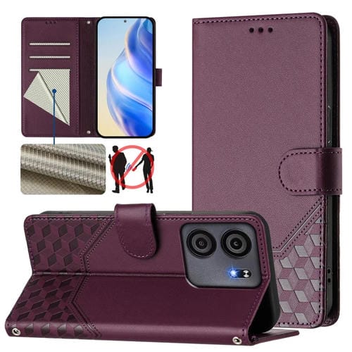 Funda de Cuero RFID con Relieve en Panal para Blu View 5 (Violeta)