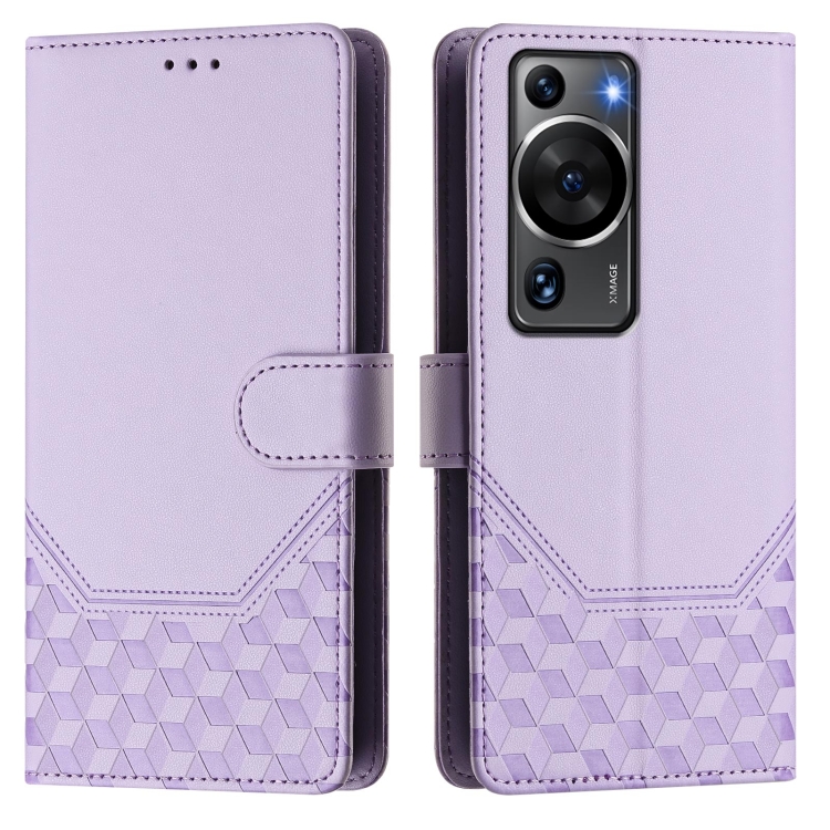 Funda de Cuero Rfid con Relieve en Panal para Huawei P60/P60 Pro (Morado Claro)