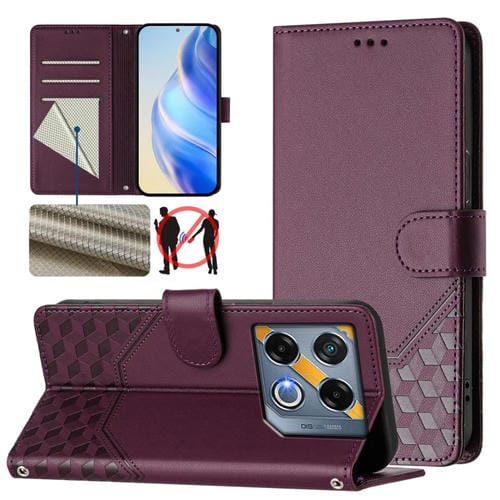 Funda de Cuero Rfid con Relieve en Panal para Infinix GT 20 Pro 5G (Violeta)