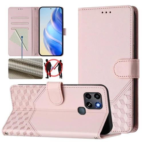 Funda de Cuero RFID con Relieve en Panal para Infinix Smart 6/6 Plus/6 HD (Rosa)