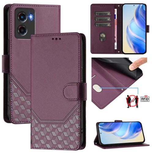 Funda de Cuero Rfid con Relieve en Panal para Motorola Moto G05 (Violeta)