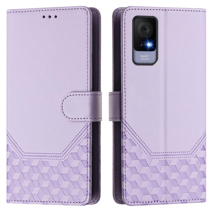 Funda de Cuero Rfid con Relieve Panal para TCL 405/406/408 (Morado Claro)