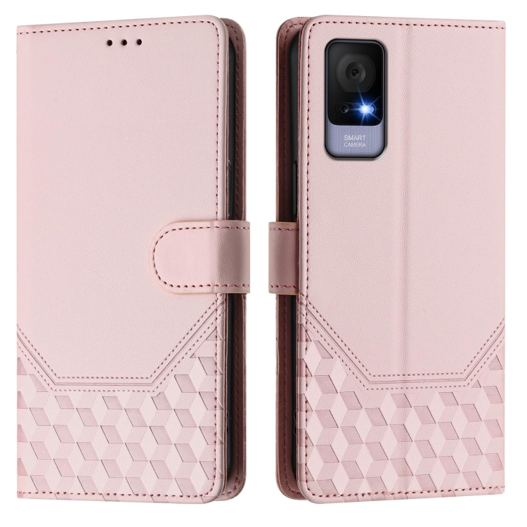 Funda de Cuero Rfid con Relieve en Panal para TCL 405/406/408 (Rosa)