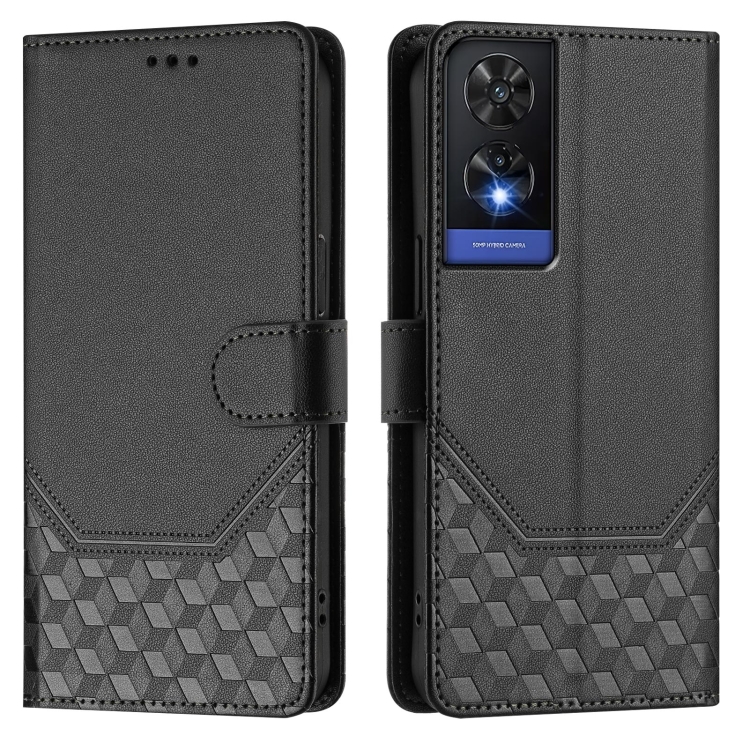 Funda de Cuero Rfid con Relieve en Panal para TCL 505 (Negra)