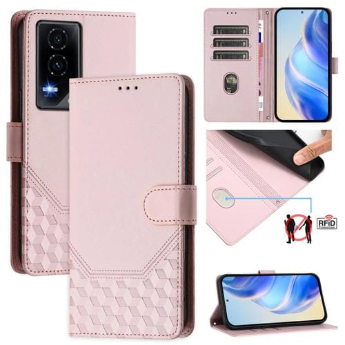 Funda de Cuero Rfid con Relieve en Panal para Teléfono Honor GT (Rosa)