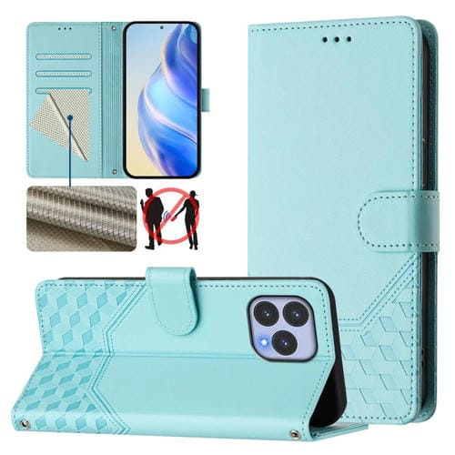 Funda de Cuero Rfid con Relieve en Panal para Teléfono Wiko T60 (Verde Menta)